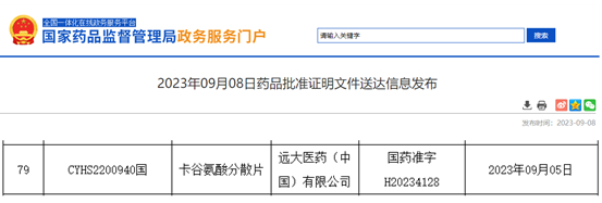远大医药国内首仿卡谷氨酸分散片获颁发药品注册证书