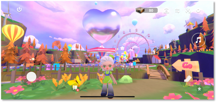 比如在《开不了口》空间中,伴随歌曲,用户可驾驶小型游艇进入海中的摩天轮,当跟随摩天轮一同进入海底时,可以看到静谧的海底世界。但手机小屏播放直接限制了空间的视觉体验,玩家可以在弹幕中发送感受,但没法相互交互。根据亲测,30分钟内即可逛完所有空间,除去收集音符外,并没有更多玩法。