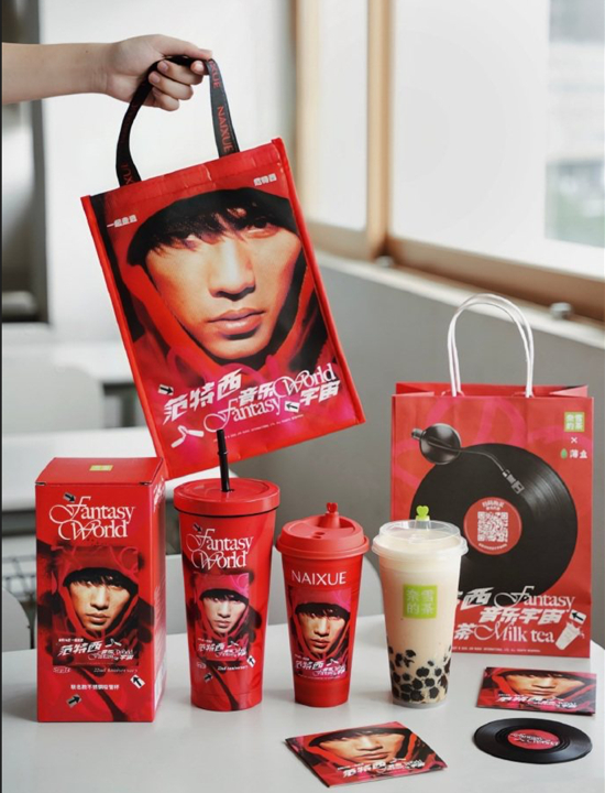 在瑞幸联名茅台、喜茶联名FENDI、茶百道联名米哈游后,奈雪的茶搭上了周杰伦。9月14日,在《范特西》专辑发行22周年之际,奈雪的茶推出“范特西音乐宇宙”主题的奶茶与周边。