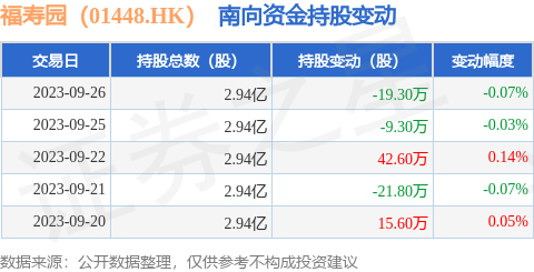 福寿园(01448.HK):9月26日南向资金减持19.3万股