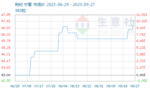枸杞 | 宁夏380粒 | 46.00 | 47.50 | +3.26% |