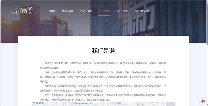 东方甄选官网显示,东方甄选成立于2021年,致力于链接生产者、消费者,持续提供高品质农品好物。