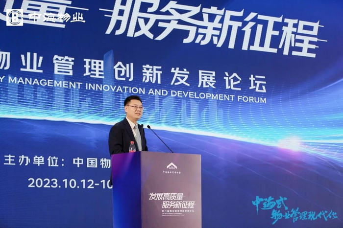 2023年10月12日,中海集团董事、中海物业董事局主席张贵清以《新阶段 新目标 新发展》为题,在“发展高质量,服务新征程”第六届中国物业管理创新发展论坛上发表主题演讲。