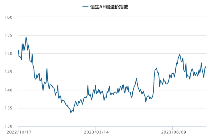 这里展开介绍一个指标——AH溢价指数,指数追踪在内地和香港两地同时上市的股票(内地称A股,香港称H股)的价格差异,指数越高,代表A股相对H股越贵(溢价越高)。当前,AH溢价指数远超100的分位线,港股相对估值更低,投资价值凸显。近期,AH溢价指数基本维持在140附近,也就是A股相对于港股贵大约40%。