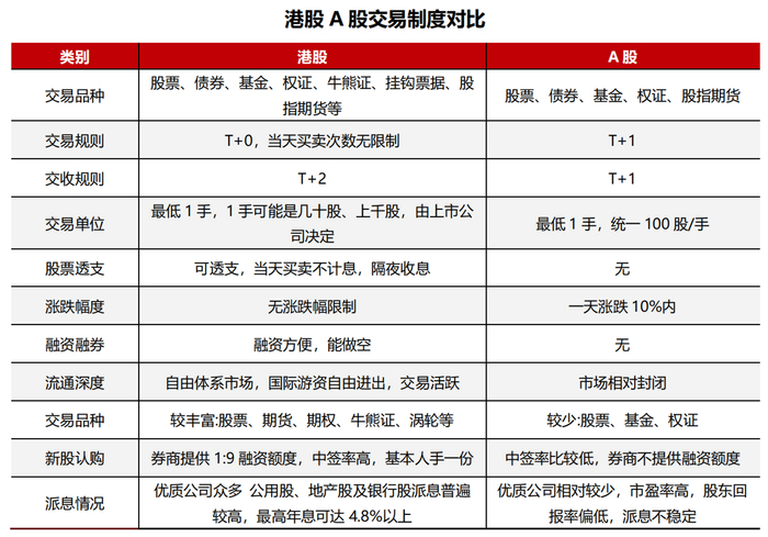 港股与A股市场更细化的对比表如下,供需要的投资者参考~