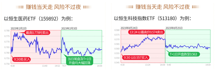 以恒生医药ETF为例,如果2023年2月2日开盘买入,卖出,则最高可获得2.50%的收益。如果采用T+1交易模式,则在第二日开盘时仅能获得0.13%的收益。