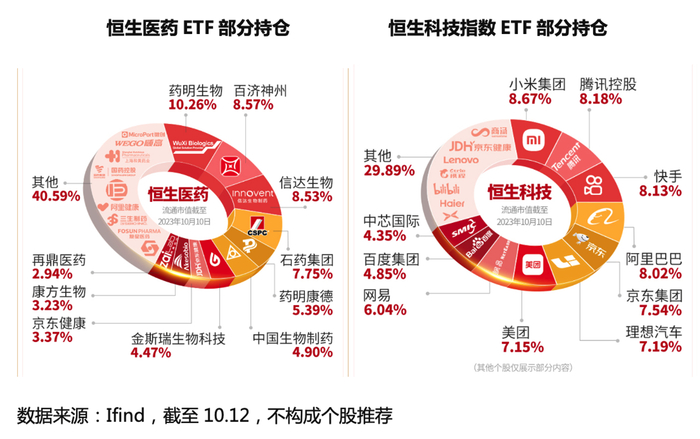 以恒生医药ETF、恒生科技指数ETF为例,若以1手(100份来计算),分别仅需要574/530元的成本,门槛相对较低。也就是说,我们可以较低的成本持有一篮子股票,像恒生科技ETF持有阿里巴巴、京东集团、东方甄选、快手等有望在双十一期间热度提升的互联网/电商龙头,恒生医药ETF则覆盖药明系的药明生物、药明康德,以及生物科技等研发型企业,随着减肥药带动创新药热度提升,市场有望重新关注到医药板块的低位机会。
