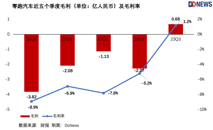 值得关注的是,上市一年,零跑汽车的毛利率终于由负转正至1.2%,与去年同期的-8.9%、今年二季度的-5.2%相比持续改善,而且还比原计划提早了一个季度实现转正。