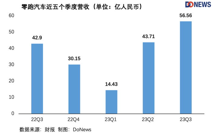 本季度,零跑汽车营收56.56亿元(人民币,下同),单季度营收破纪录。同比增长31.9%,环比增长29.4%。