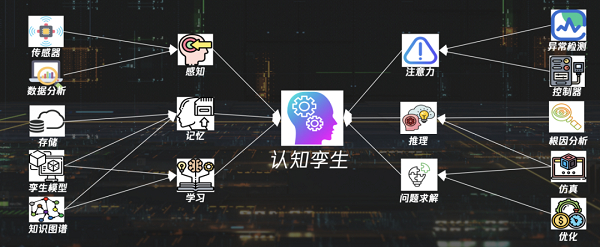 认知孪生(Cognitive Digital Twins,CDT)是数字孪生的一种扩展形式,除了基本DT功能外,还具备认知功能,如记忆、检索、反思和推理。其核心思想是利用先进的数据分析、机器学习和人工智能技术,使模型具备自我学习、推理和决策能力。一个完整的认知孪生,具备感知、记忆、学习、注意力、推理以及最终问题求解能力,并依赖于云端存储、数据分析、知识图谱、仿真优化等技术驱动实现这些能力。