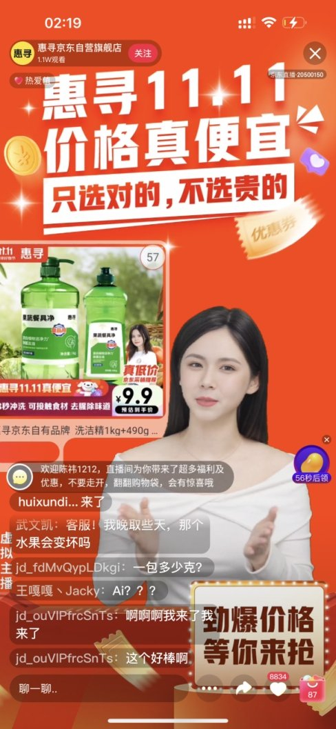值得一提的是,来自惠寻的明星单品在11.11期间频频亮相京东自有品牌的采销直播间。言犀智能主播的应用,也进一步助力惠寻实现降本增效,综合为消费者带来真低价、闭眼买的购物体验。