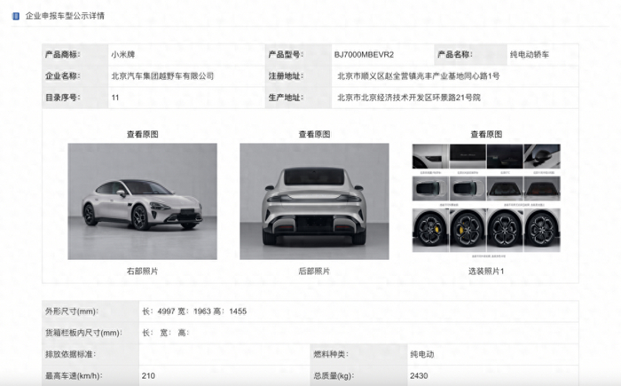 在业内还在猜测小米 汽车 会以什么样的方式获得造车资质,其首款车型已经登上工信部新车目录。