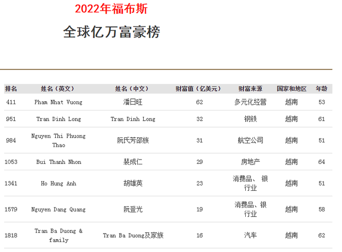 从2012开始至今,潘日旺牢牢占据“越南首富”的位子,孤独求败,他的身价甚至一度超越了越南十大富豪中其他九人的总和。