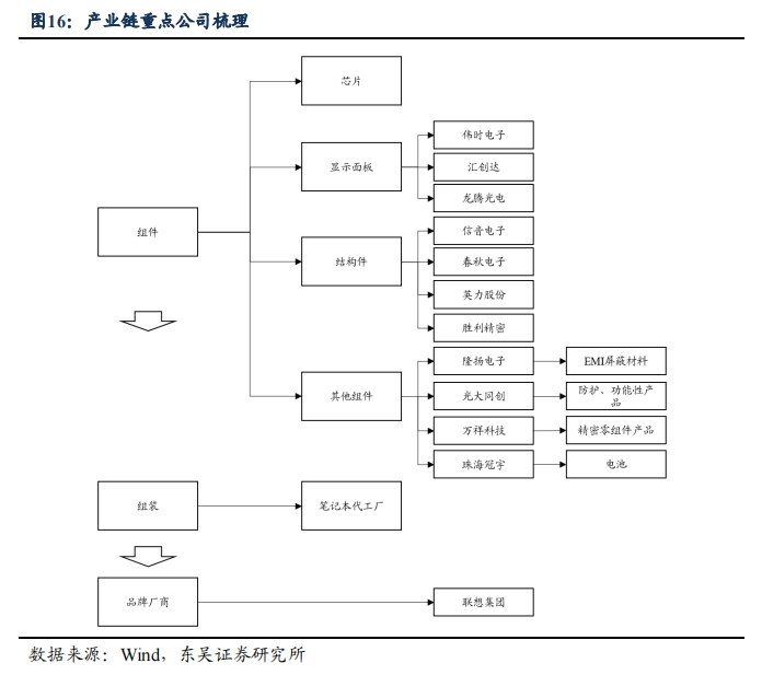 马天翼等人认为,当前PC行业已进入复苏阶段,具有估值底部复苏预期,在当前时点看好PC产业,产业链上的龙头、重点企业的业绩值得期待。建议关注上游显示面板公司伟时电子、汇创达、龙腾光电;推荐上游结构件公司春秋电子,建议关注上游结构件公司胜利精密、英力股份、信音电子;建议关注上游其他组件公司隆扬电子、光大同创、万祥科技、珠海冠宇;下游终端销售公司联想集团。