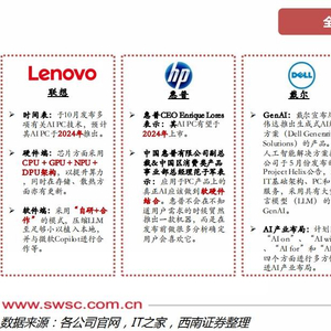 西南证券分析师王湘杰、杨镇宇11月10日研报指出,AI PC颠覆软硬件形式,AI PC将AI模型与PC结合,带来架构设计、交互方式、内容、应用生态等创新,将深入变革PC产业。当前,各PC厂商积极推动AI PC落地。其中,联想前沿布局AI PC具有先发优势,未来有望首批发布基于英特尔最先进处理器的AI PC,并预计在2024年推出AI手机和AI电脑,有望抢占更多PC市场份额。