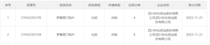 首仿!科伦药业罗替高汀贴片申报上市