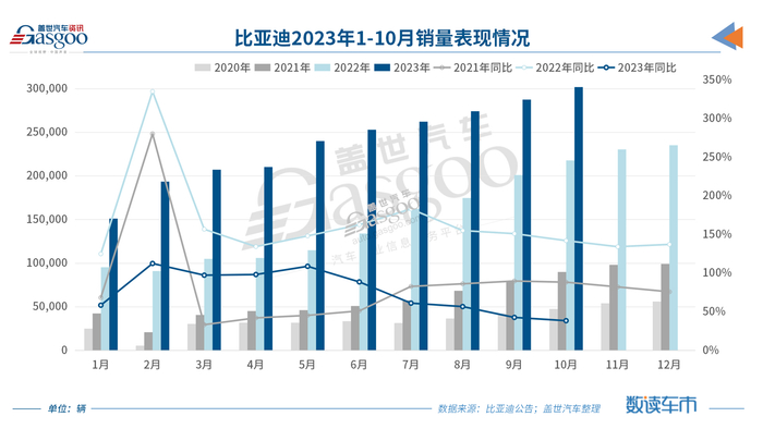 海豚也刷新了月度销量新高。虽然从今年3月开始,海豚的月销量就稳定在3万辆以上,但10月突破3.5万辆的情况,还是首次出现。目前,海豚和海鸥两款车分工明确,海豚负责10万元级以上的小车市场,海鸥则专注于收割10万元以下的市场,而从低到高无死角市场覆盖的热销,才是比亚迪当前最恐怖的地方。今年前十个月,比亚迪的累计销量已经接近240万辆,按照当前的发展势头,今年拿下300万辆的年度目标,已经是势在必行。