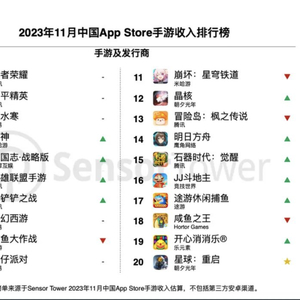 12月7日消息,第三方数据检测机构Sensor Tower发布了2023年11月中国手游发行商全球收入排行榜单(仅统计全球App Store和Google Play商店手游收入,不计算中国地区第三方安卓渠道)。