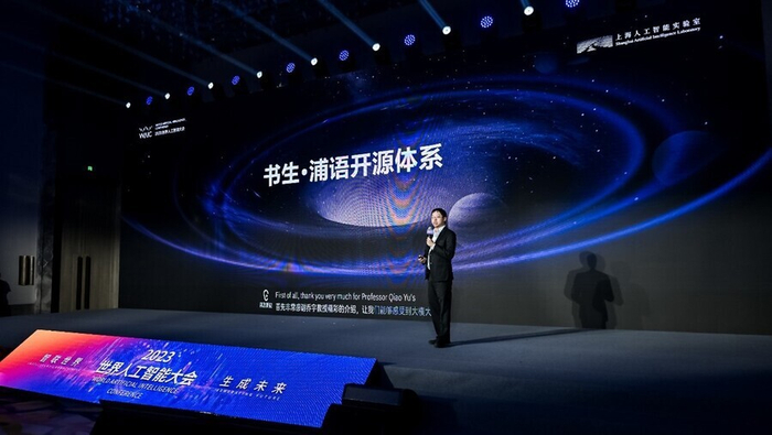 林达华在2023世界人工智能大会上发布“书生·浦语”开源体系。