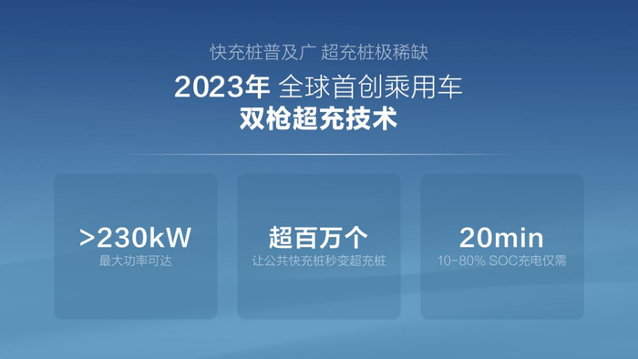 为此,比亚迪推出乘用车双枪超充技术,用升高电流的方法来提升充电功率。以腾势 N7 为例,双枪超充最大功率可达 230 kW,公共快充桩上实现 15 分钟充电 350 公里。