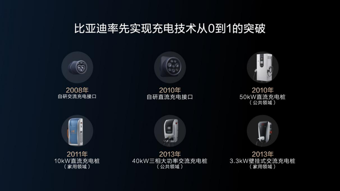 为破解这些发展难题,比亚迪实现了充电技术从 0 到 1 的突破,开启了充电技术的全面创新之路——在车端和桩端,比亚迪自研了家用和公共领域的交、直流充电技术,为国标交、直流充电标准提供了参考范本,也成为首批中国电动汽车充电标准起草单位。