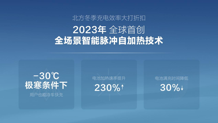 为此,比亚迪研发了全场景智能脉冲自加热技术,该技术可以实现极低温下冷车快充。