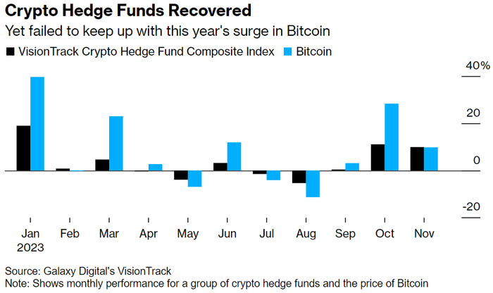 加密货币对冲基金复苏,但未能赶上今年比特币的飙升势头