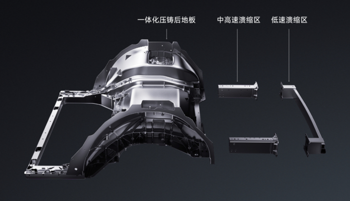 雷军特意提到了小米汽车的应对办法:在一体化压铸的地板后部,加上了三段式防撞设计。如果车辆被追尾,该设计可以溃缩吸能,减轻对车辆整体结构的伤害,通过“舍小保大”,让事故维修不那么过于昂贵。
