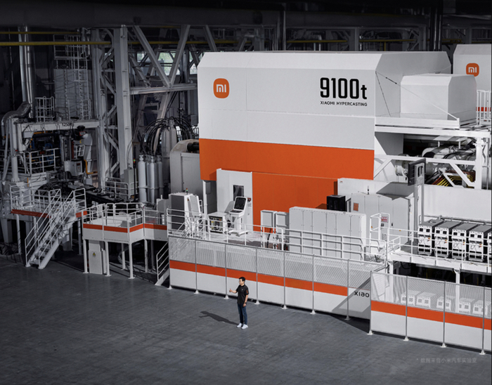 在车辆智能制造方面,小米同样采用目前新能源车行业最先进的整体压铸等车身制造工艺。雷军介绍了全栈自研的超级压铸机——压力高达9100吨,占地面积相当于两个篮球场,可以整体压铸制造车辆的后地板等大型部件。