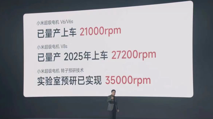 雷军在发布会上介绍了小米汽车自研电机的进展。