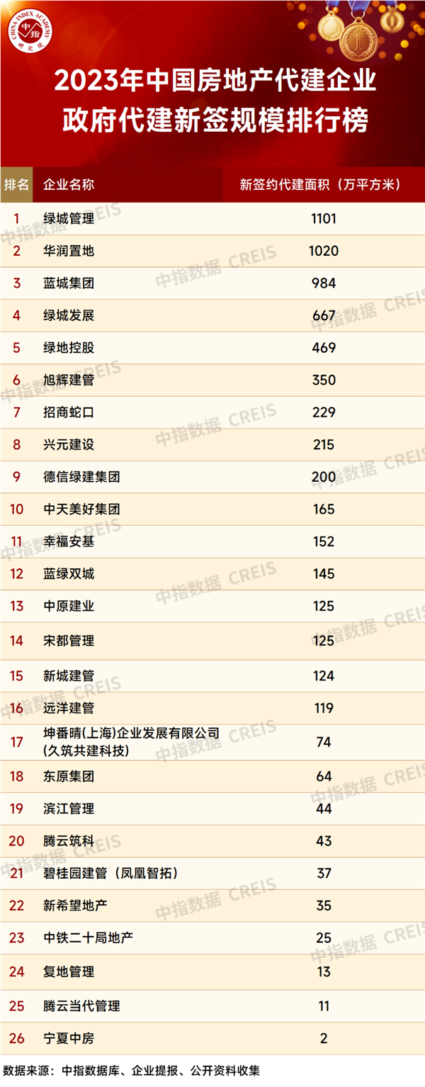 政府代建榜|绿城管理、华润、蓝城、绿城、绿地遥遥领先