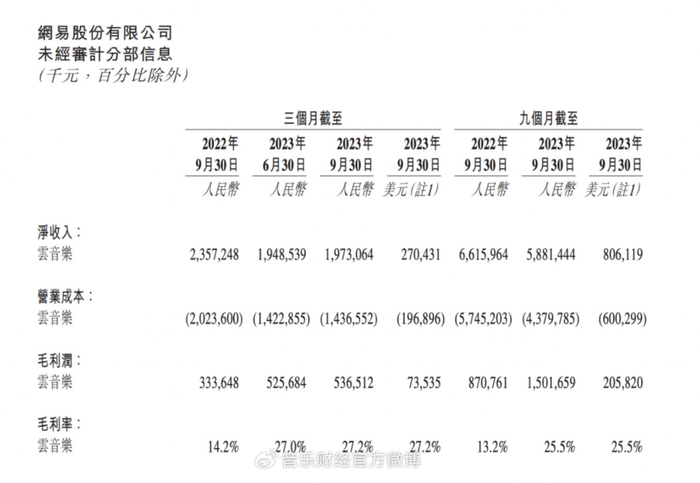 财报数据显示,2023年来,网易云音乐收入持续下滑。其中,一季度收入同比下滑5.25%,上半年同比下滑8.2%,而三季度降幅更大,收入同比下滑16.3%至19.73亿元。网易云音乐在中报内提到,收入下滑主要受社交娱乐版块影响。(回顾:音乐订阅和现场娱乐表现亮眼,大麦收入超7亿元GMV增幅逾500%|季报观察)
