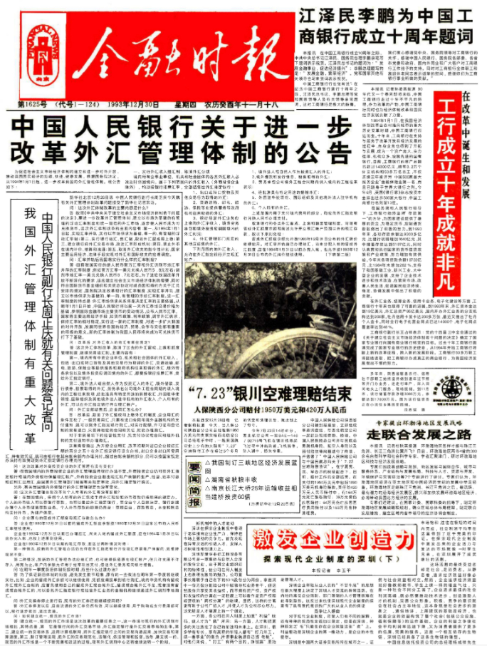 1993年底关于外汇管理体制改革的报纸截图汪小姐漂亮的“翻身仗”正是以此为背景。