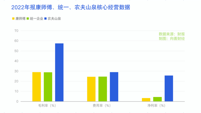 一般来说,消费领域推出新品牌,或者冲击新的成长业务,是需要大量的营销费用去做市场品牌的,但在消费企业中,康师傅的费用率其实并不算高。以2022年的财报数据来看,康师傅的营业费用率为24.4%,农夫山泉为29.05%,统一企业为24.54%。