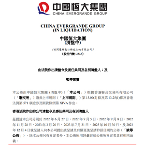 中国恒大公告,恒大此前就呈请人多次向中国恒大提出呈请以及有关延后呈请聆讯,1月29日,香港高等法院颁布命令中国恒大清盘。