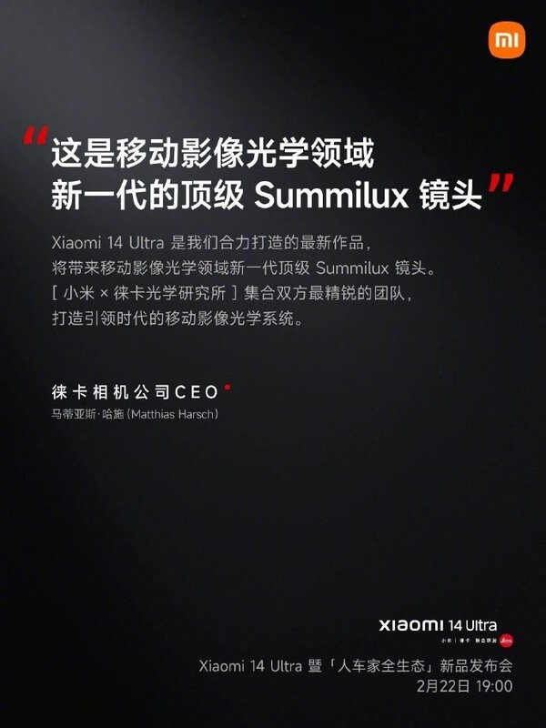 雷军:徕卡CEO说小米14 Ultra有顶级Summilux镜头