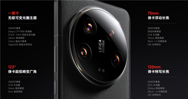 此外,小米14 Ultra在影像方面还配备可3.2倍光学变焦的75mm直立长焦、5倍光学变焦的120mm潜望长焦,都有出色的微距表现,远近层次都分明,官方也称“旗舰长焦体验从未如此杰出”。