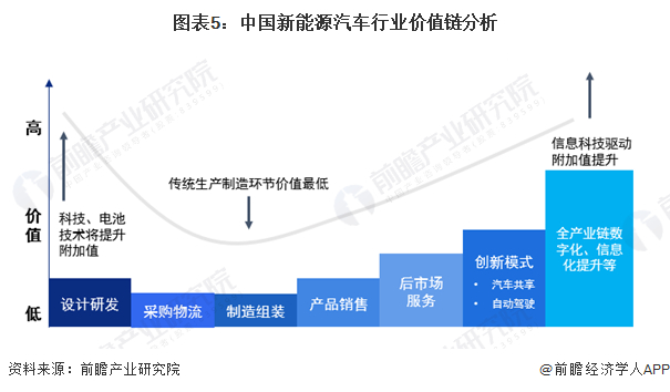 中国汽车行业价值链中,价值最为密集的环节主要在于车后市场服务、创新模式以及科技信息驱动的全产业链数字化转型、信息化提升等领域,此外,在研发环节价值也较为密集。行业中制造价值最低的环节为制造组装环节,该环节技术密集程度较低,价值较低,同时也是竞争者进入行业时最优先涌入的环节。