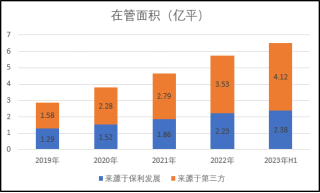 据中报披露,保利物业期末商业及写字楼的在管面积约为0.23亿平方米,占总在管面积的3.5%,较2022年同期微涨0.1个百分点;期内源自该业态的物业管理服务收入约为7.58亿元,较2022年同期增长约25.36%。