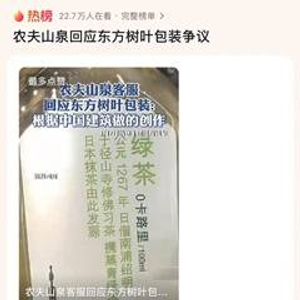 农夫山泉作为国内知名饮用水品牌,其产品包装设计一直为消费者所熟知。然而,近期该品牌旗下的东方树叶绿茶包装上出现的日本浅草寺五重塔图案,在网络上引发了热议。