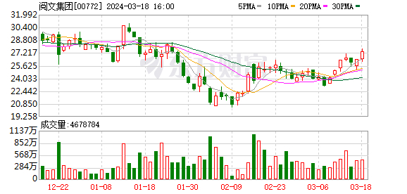 3月18日,阅文集团的股价报27.35港元/股,总市值约280亿港元。