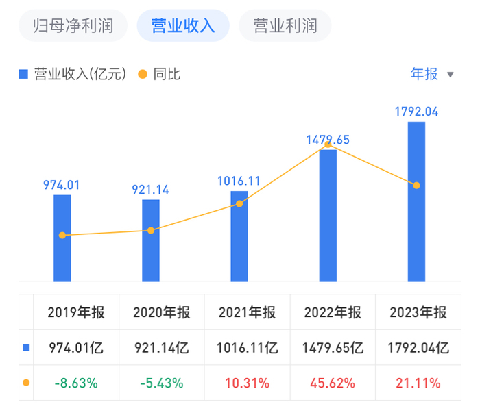 财报显示,2023年吉利汽车实现营业收入1792亿元,同比增长21%;实现归母净利润53.08亿元,同比增长0.91%。