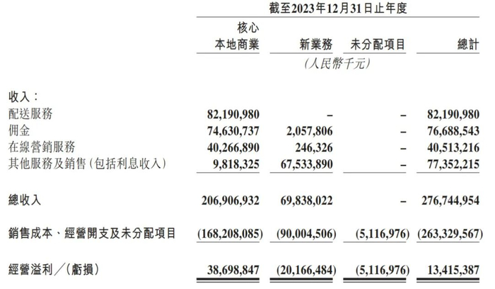 美团2023年新业务来自佣金收入为20.58亿元,来自在线营销服务营收为2.46亿元,来自其他服務及銷售(包括利息收入)营收为675.34亿元。