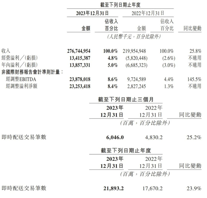 美团2023年营收2767亿:同比增26% 经调整利润233亿
