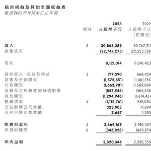 2023年,中国联塑收入同比增加0.3%至308.68亿元;毛利81.21亿元;年内溢利23.20亿元。每股基本盈利为人民币0.77元。