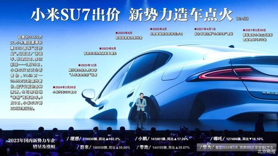 从小米汽车首款车型进店开始,从外观、内饰、配置、颜色各种猜测不断露出,外界根本等不到3月28日晚7点开始的新车发布会。而在去年小米技术日后,小米相继发布关于SU7的十问十答,雷军更在小米汽车超级工厂进行直播,让小米汽车的热度持续升高,据统计,临近小米汽车发布会,关于“小米汽车”的词条搜索量甚至超过“小米”。近期,没有一家车企的产品上市拥有如小米SU7般的热度。