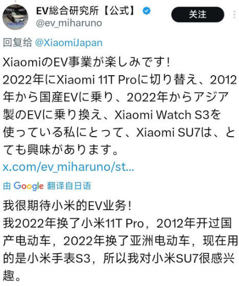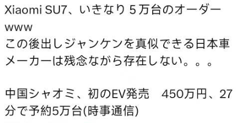 小米SU7上市后引起日本网友热议 看看他们是怎么说的