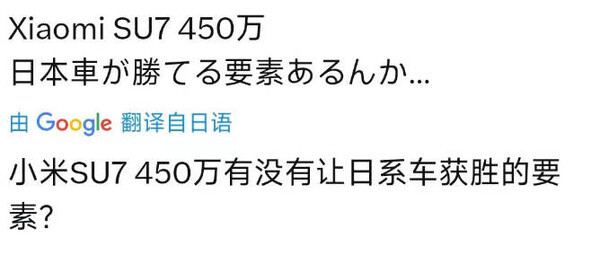 也有网友为同行业的其它厂商捏了把冷汗,小米SU7的起售价格约合450万日元,对比日本几家本土汽车厂商的电动汽车极具竞争力,就连特斯拉也未必能够比拟。