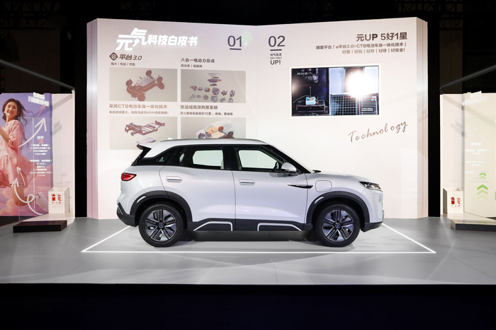 与竞品相比,元UP车内空间更大、更舒适等这些都是e平台3.0带来的效果。