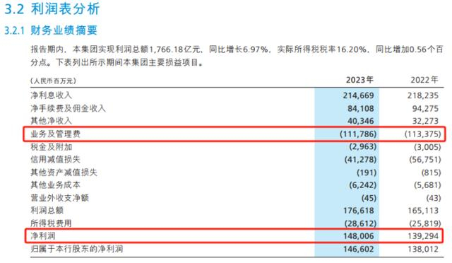 “面对贷款利率下调、息差收窄、费率下降、 资本市场 低迷、有效信贷需求不足、风险形势复杂严峻等不利因素影响,(招行)积极采取各项应对措施……营业净收入3390.78亿元,同比下降1.64%;归属本行股东的净利润为1466.02亿元,同比增长6.22%。”招商银行董事长缪建民在2023年业绩发布会上说道。